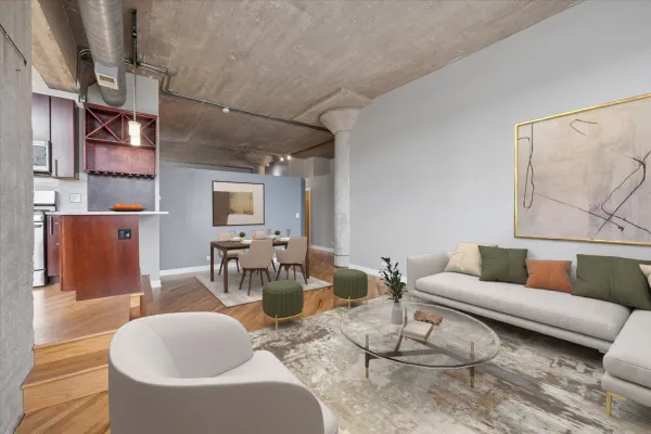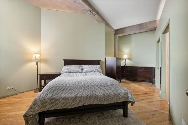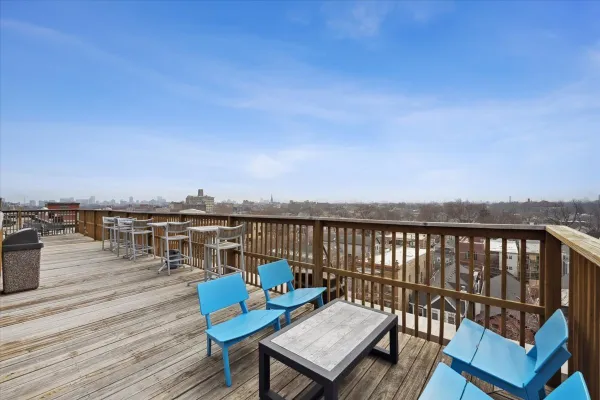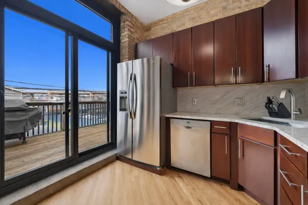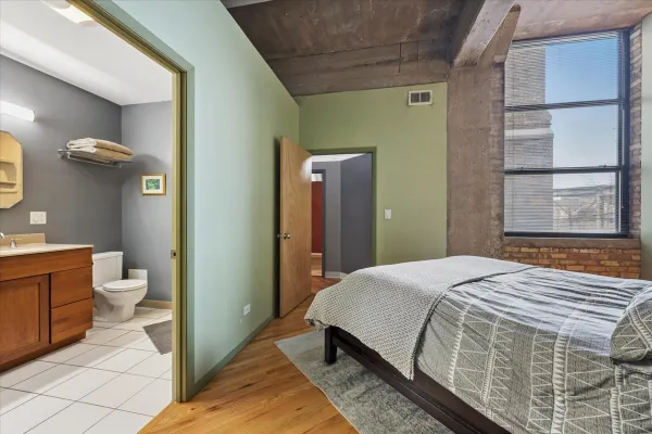 Welcome home to this spacious 2 bedroom/2 bathroom corner loft at the iconic Pencil Factory Lofts, ideally located in the heart of Roscoe Village. This home offers one of the largest two-bedroom floor plans in the building and is one of only a select few units featuring a rare 10x14 private deck. This authentic concrete loft showcases soaring 12-foot ceilings, oversized 9-foot windows, exposed brick, and beautifully positioned pillars, creating a dramatic yet functional living space. The expansive open-concept living and dining area is flooded with natural light from dual exposures and easily accommodates a full dining setup. The recently updated kitchen features quartz countertops and backsplash, a new sink, and newly refinished floors. Just off the kitchen, the large private deck offers the perfect space for grilling, relaxing, and entertaining. The spacious primary suite features newly installed hardwood floors, a full en-suite bath, and an oversized professionally organized walk-in closet. The generous second bedroom also includes new hardwood flooring and an organized closet, and is conveniently located near the second full bathroom and in-unit laundry. Additional highlights include a large lofted storage area above the hallway as well as a separate storage unit in the building. Residents enjoy exceptional building amenities, including a rooftop deck with breathtaking city views, recently renovated courtyard with grills, updated fitness center, business center, package receiving room, bike room, garage car wash station, and dog wash station. Located in one of Chicago's most beloved neighborhoods, this home offers an unbeatable Roscoe Village location just steps from neighborhood shops, restaurants, parks, and cafes. Easy access to the Paulina and Addison Brown Line CTA stops, multiple bus routes, and nearby grocery options including Whole Foods and Mariano's.